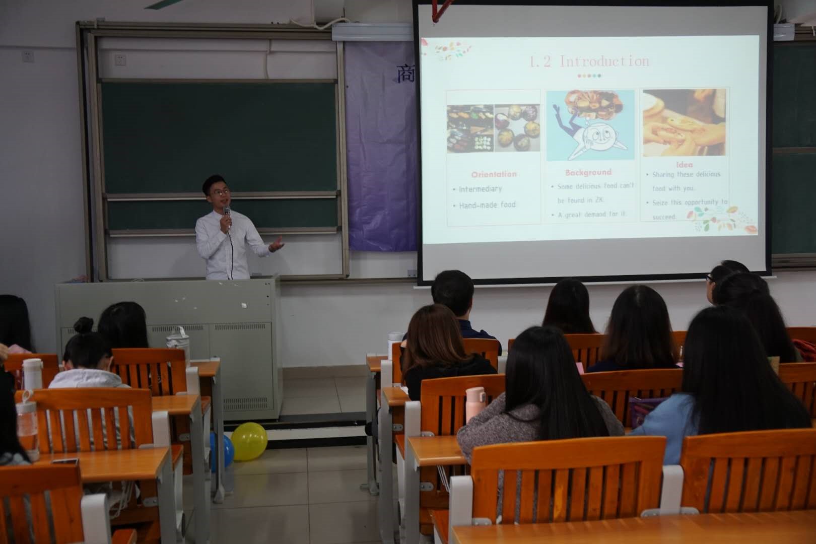 (本站讯 外国语学院陈珊儿供稿)为增强学生们对创业知识的了解,促进商务英语专业学生全面发展,2017级商务英语专业创业项目活动成果展于12月20日下午2:30在 D栋510课室举行。莅临本次成果展的嘉宾有商务英语系主任王广老师,邹鹏老师、周佩红老师、王菁老师、石涛瑞老师、江楚池老师、崔燕老师、余桂婷老师、张野冰老师及邓慧瑶老师。17级商务英语专业全体学生参加本次活动展示。