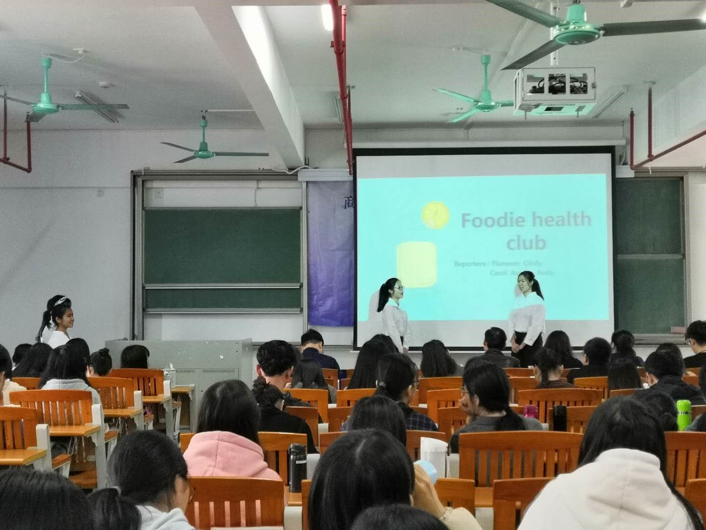 本次创业活动共分为12个团队,每个团队约有600元的创业经费。此次成果展的比赛方式是,每个参赛队伍在10-12分钟内通过视频、ppt展示创业过程与成果。比赛开始前,工作人员播放参赛团队的创业成果视频。视频播放结束后,成果展正式开始。此次展示比赛全程用英语展示,参赛队伍不仅用流利的口语向观众们展示自己的创业成果,与观众们进行互动,而且也给老师们送上创业项目中的销售产品。