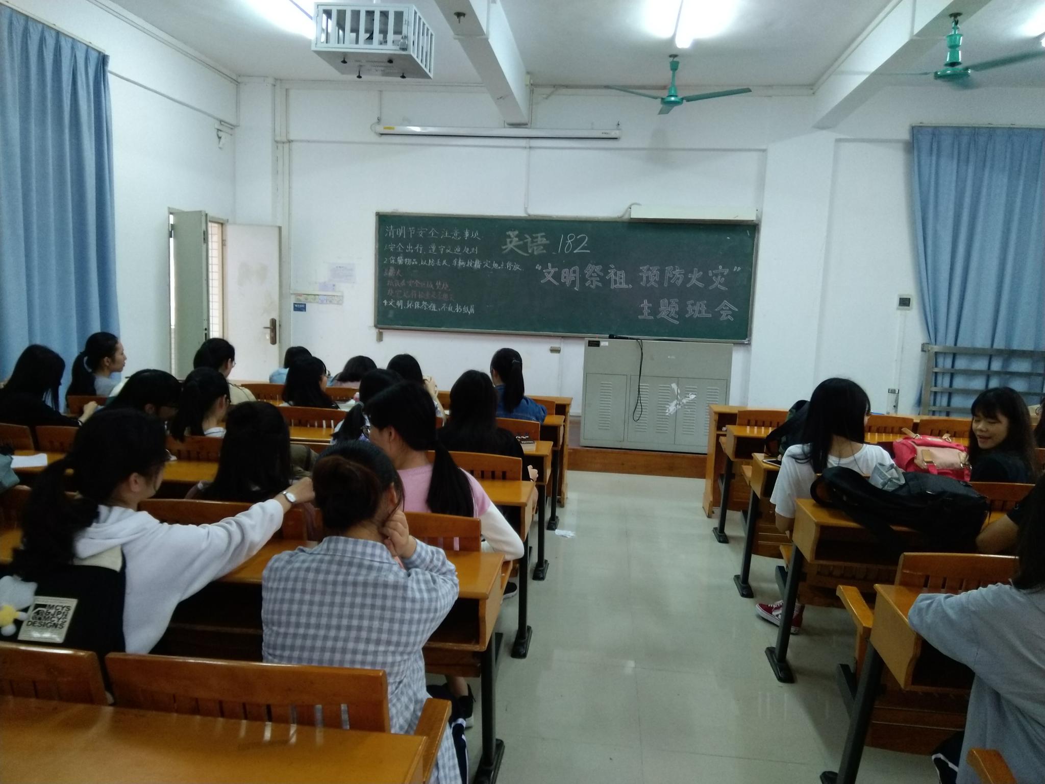 清明节是我国重要的民族传统节日,是对青年学生进行思想道德教育的宝贵时机,按照学校的统一部署,在清明节到来之际,外国语学院各个班级分别于4月3日、4月4日召开了“文明祭祖,预防火灾”主题班会。会议分别由各班班主任主持。
