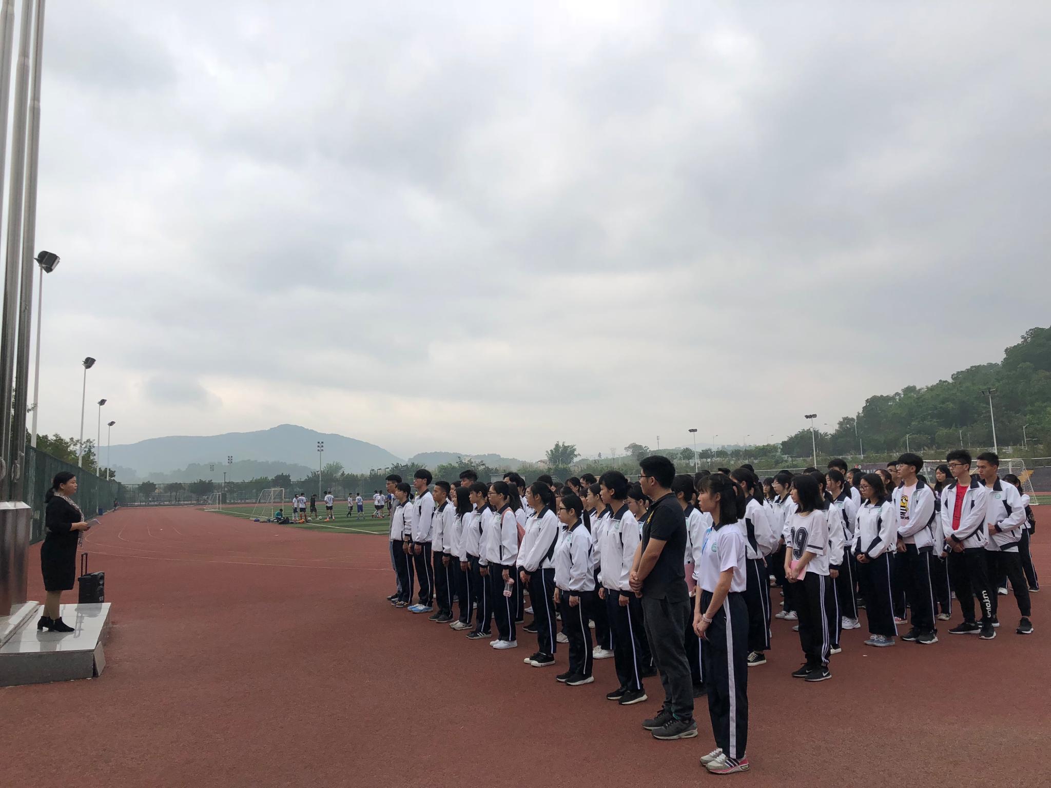 为践行爱国主义教育,提高外国语学院学生的爱国热情,2019年4月8日,外国语学院于白云校区足球场举行升旗仪式。出席本次升旗仪式的有外国语学院党总支副书记柴明勤,外国语学院辅导员周静老师和邓永权老师,优秀学生代表刘彤钰同学,参加本次升旗仪式的有英语181、182、183班以及商英181班全体同学。升旗仪式由英语181班危颖欣同学主持。
