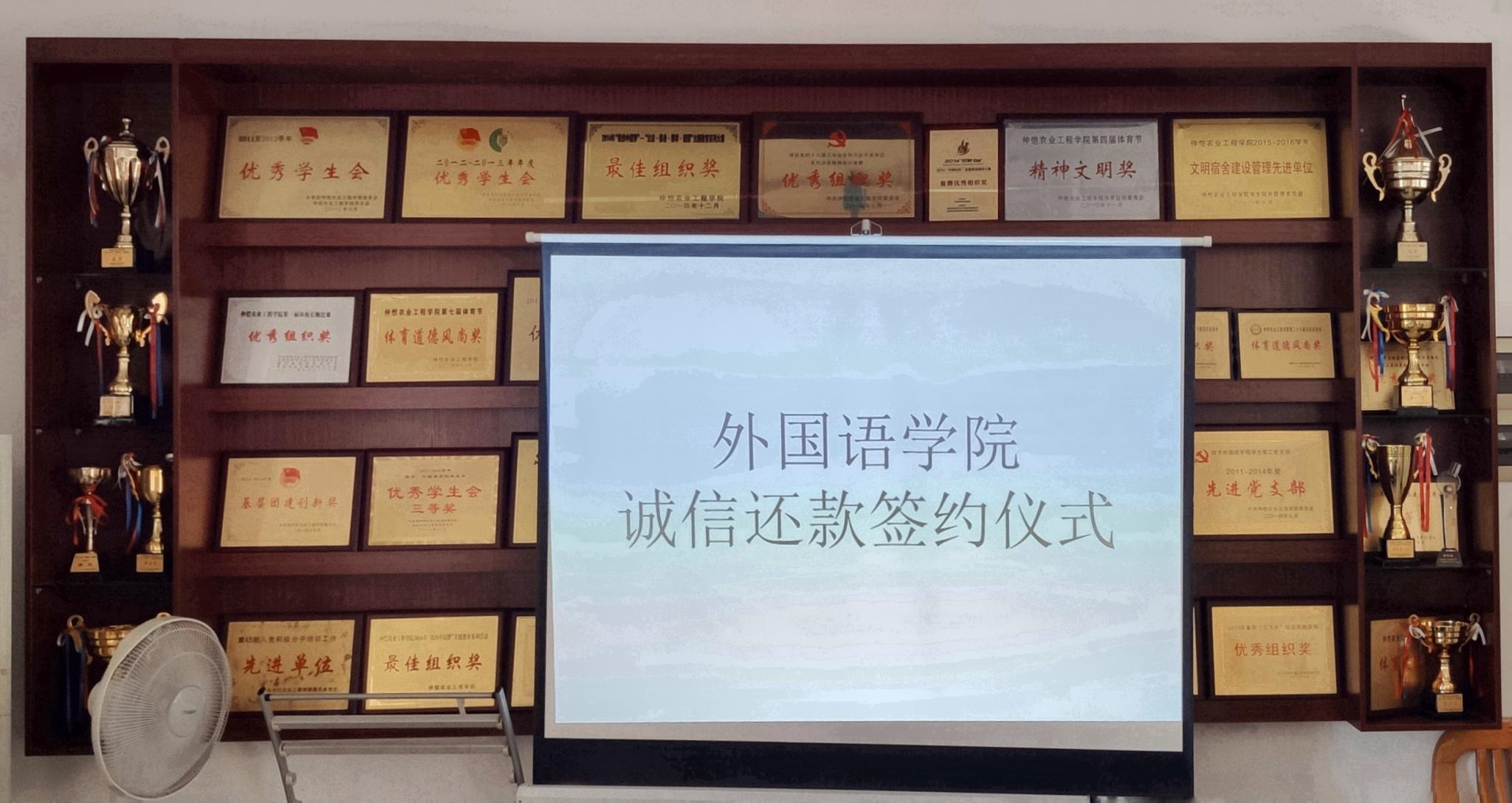 (本站讯 外国语学院刘金裕供稿)为增强未清偿国家助学贷款学生的诚信,增强学生履行合同义务的意识,外国语学院于5月19日下午5点在白云校区刘宇新楼503会议室举行诚信还款签约仪式。出席本次仪式的有外国语学院党总支副书记柴明勤以及辅导员周静老师,参加人员为外国语学院已申请国家助学贷款的大四学生。