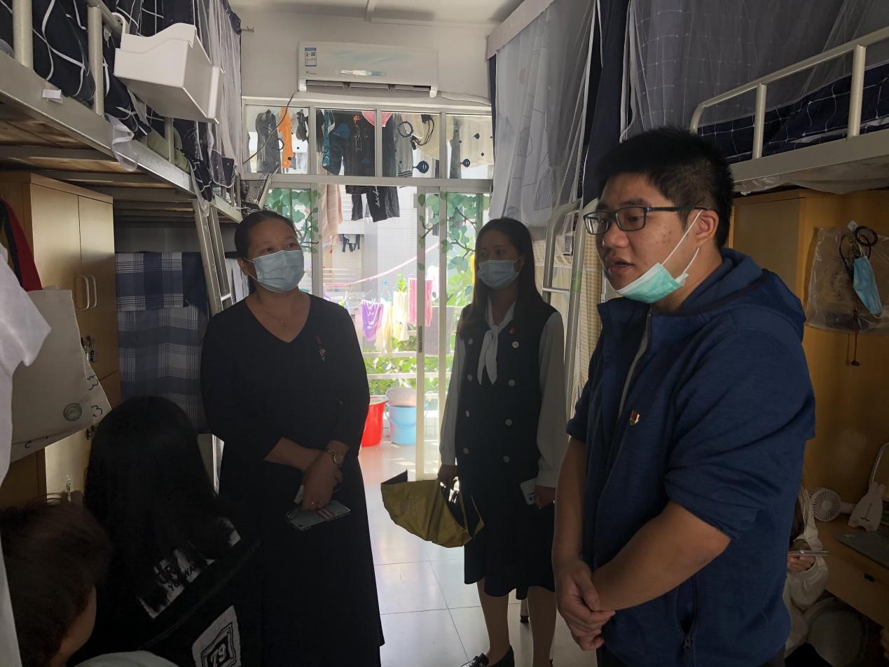 为提高外国语学院学生的安全意识,消除学生宿舍中存在的安全隐患,维护校园安全稳定,营造安全文明的宿舍环境,10月19日上午,外国语学院党总支书记吴小玲、辅导员周静、邓永权、陈韵一同对学院学生宿舍进行走访和安全隐患大排查。