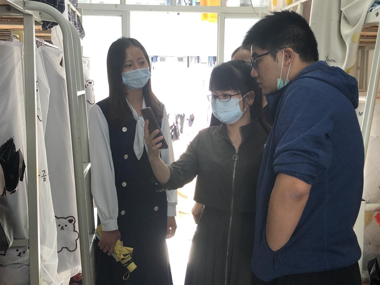 走访宿舍过程中,吴小玲书记带领辅导员细心检查学生宿舍的安全设施、查看有无大功率电器,检查是否存在私拉电线及用电安全隐患等行为,提醒学生注意用电安全,禁止使用违规电器,养成充电后及时拔出插座的好习惯,天气干燥要注意安全用电和防火,并叮嘱学生共同维护宿舍的安全和卫生环境。此外,学院领导老师还积极关心学生宿舍硬件设施问题,提醒同学们遇到椅子、门窗等硬件设施出现问题要及时报修;同时对学生目前的学习状况、思想动态、新生适应情况等进行了全面了解。