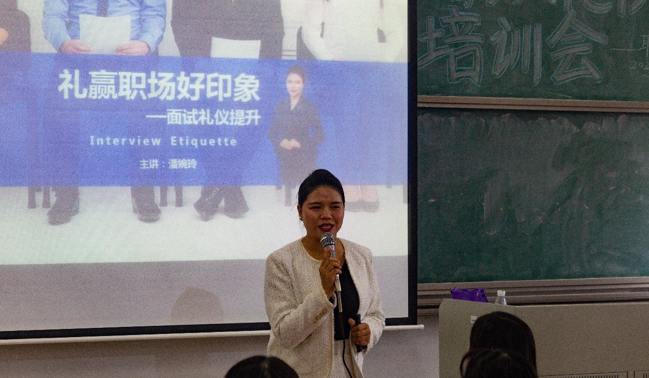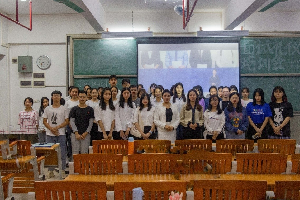 为使学生全面了解面试礼仪的重要性与实用性,掌握更多的求职面试技巧,在实践中提升个人的求职面试水平,11月9日,外国语学院邀请2012届毕业生潘婉玲在D栋602举办面试礼仪培训会。外国语学院辅导员陈韵、外国语学院50余名在校生参加培训会。