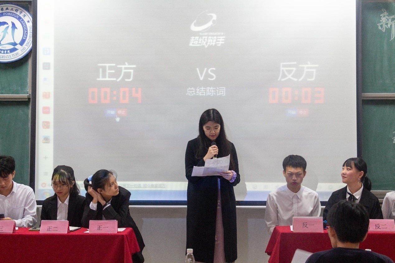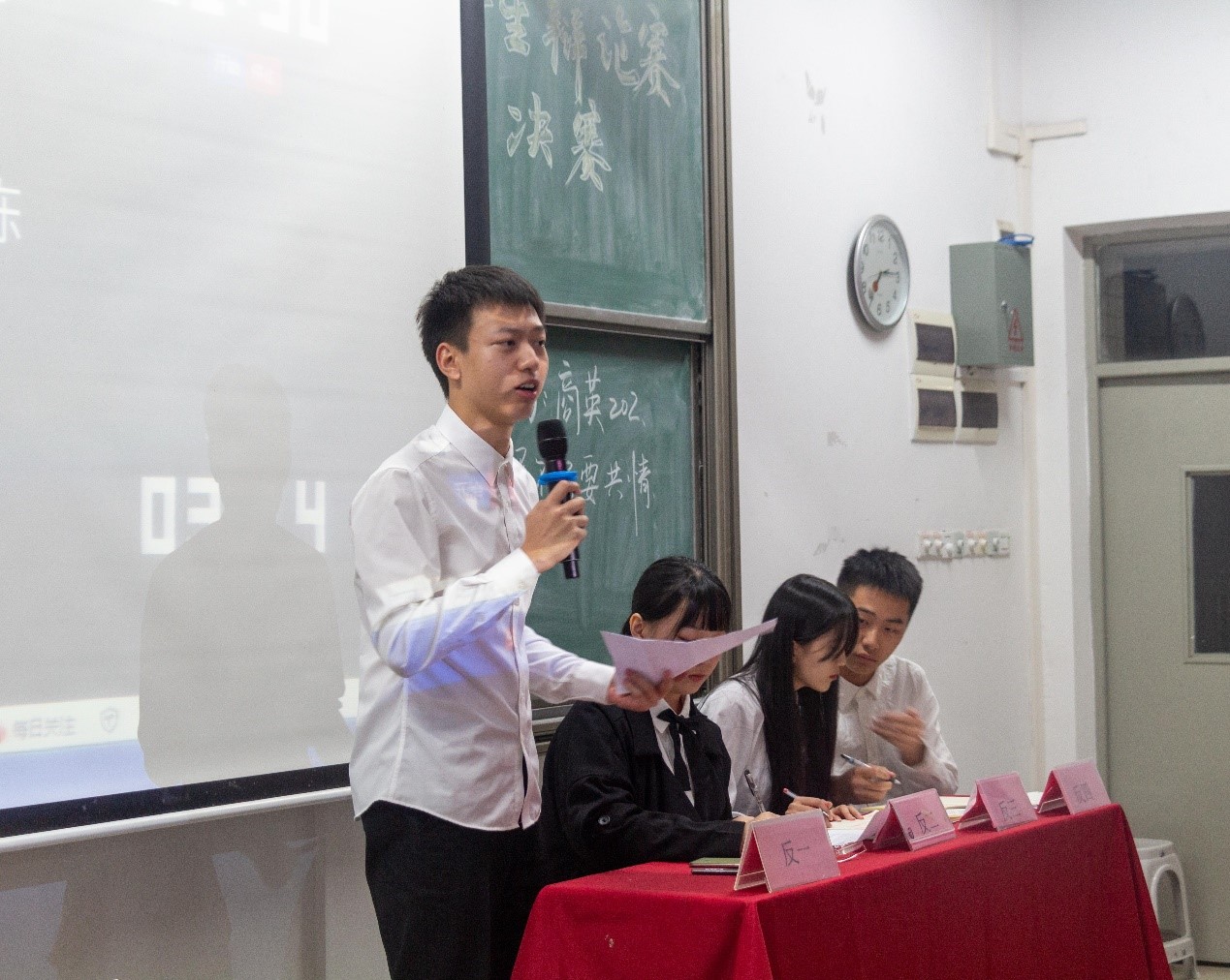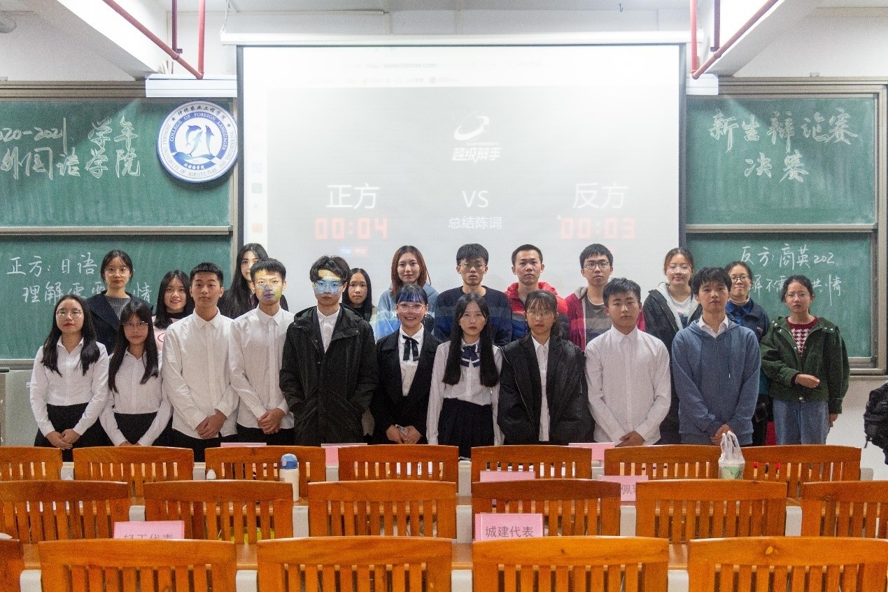 为提高学生们的语言能力和临场应变能力,12月6号晚,外国语学院于白云校区D栋512举行2020-2021学年外国语学院新生辩论赛决赛。日语202班为正方代表,辩题为“理解需要共情”;商英202班为反方代表,辩题为“理解不需要共情”。担任本次辩论赛的评委是程妙馨、冯榕超和彭丕为,外国语学院学生会主席蔡佩珊、新闻中心副主任高妹仔及轻工食品学院、城乡建设学院和农业与生物学院学生代表出席辩论赛。