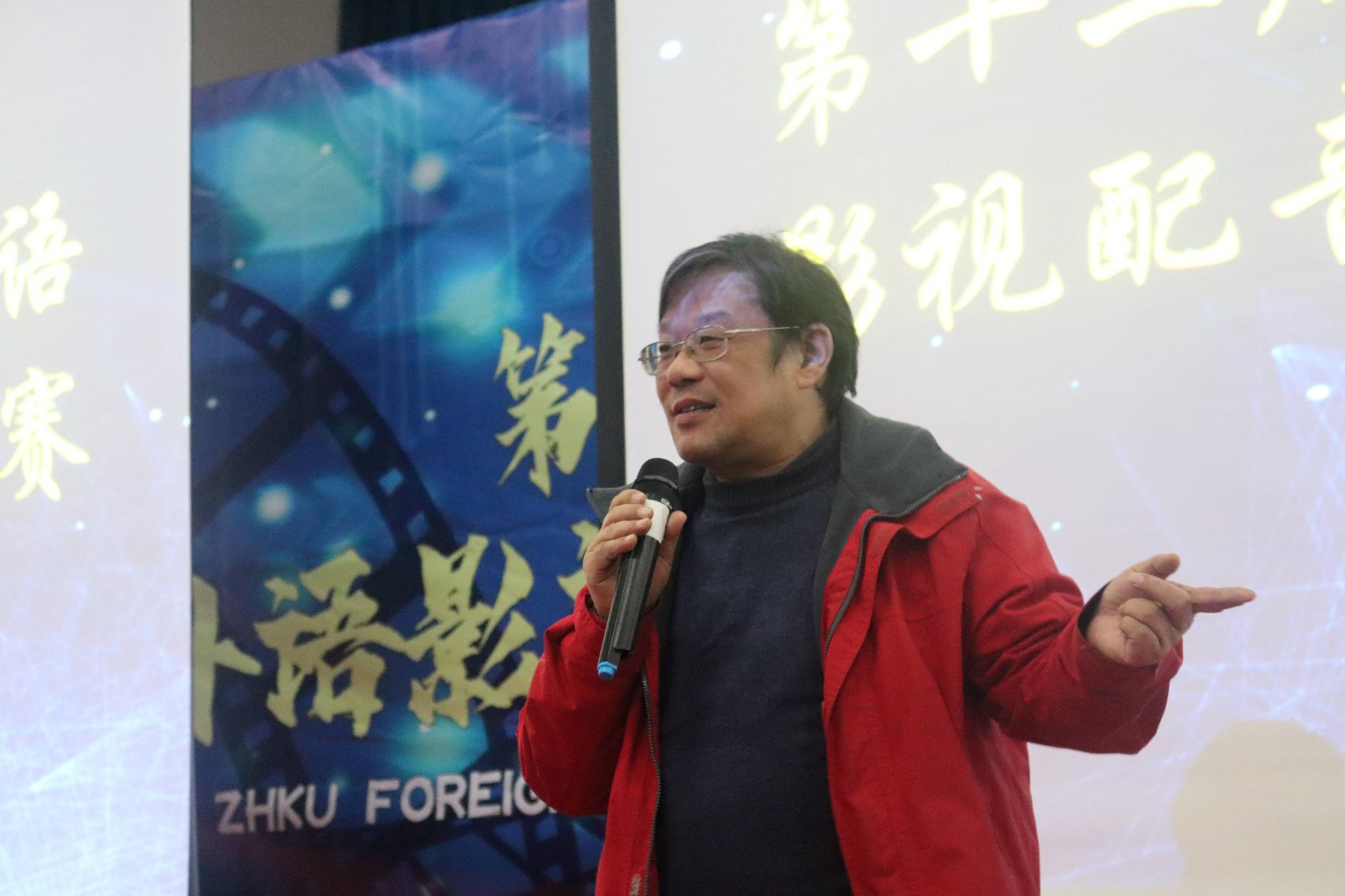 选手们比赛结束后,外国语学院院长李磊教授对本次大赛进行点评。他首先对选手们的精彩演出表示赞扬,指出参赛选手为到场观众带来一场文化盛宴。随后他提出本次比赛存在的不足并提出建议。他表示,同学们通过外语影视配音大赛,在丰富课余生活的同时,也能提高外语语音语调水平,更好学习外语。最后,他预祝外语影视配音大赛能够越办越好。