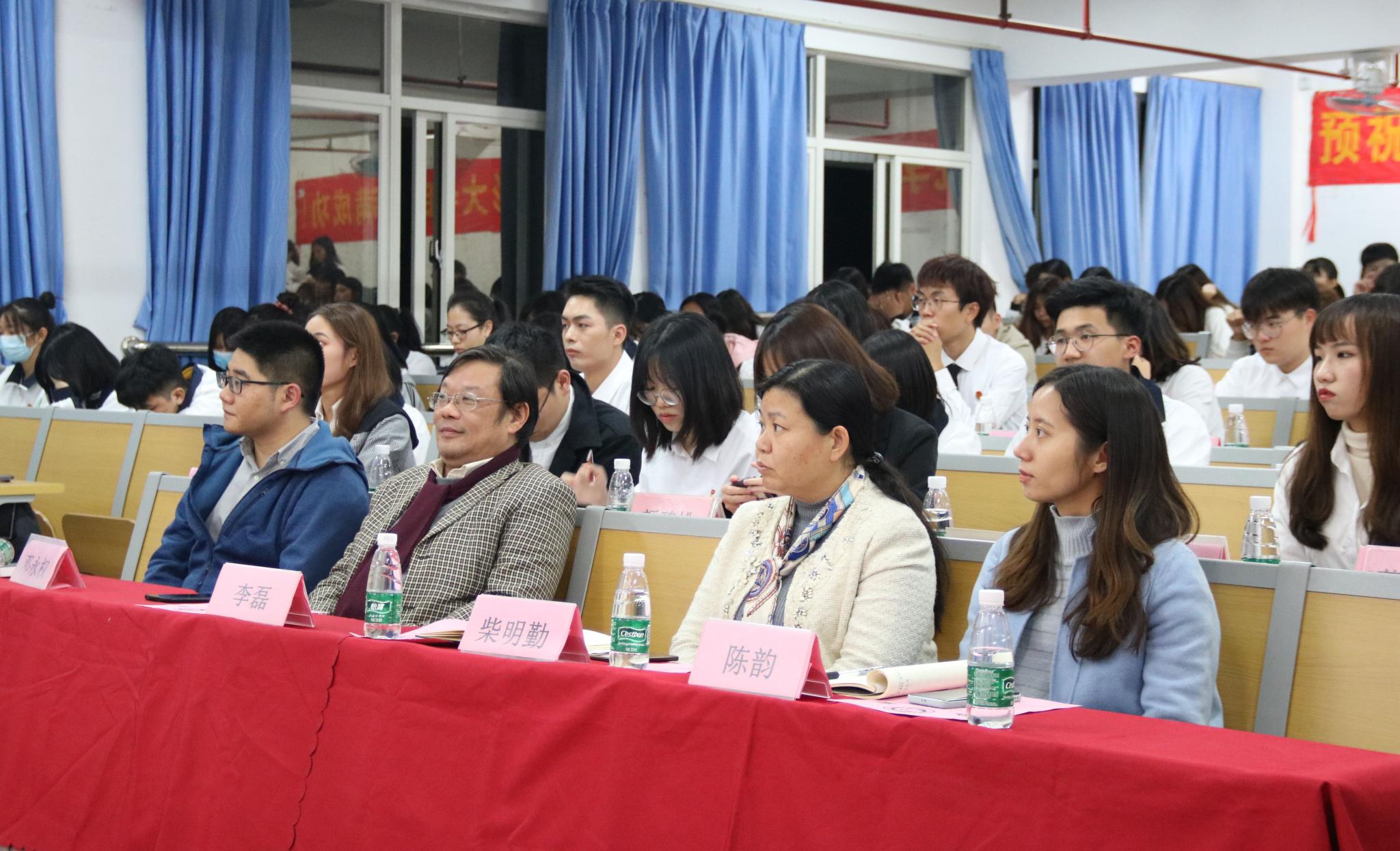 为总结上一学年各学生组织的工作,保证学生工作在新旧成员交换后能够更快正常运转,同时加强外院五大组织间的合作与交流,12月23日,外国语学院于D栋310召开2019-2020学年学生工作总结暨换届表彰大会。本次大会主题为“路漫漫行而不辍,追梦人未来可期”。外国语学院院长李磊教授、党总支副书记柴明勤、学生第一党支部书记邓永权、辅导员陈韵、校学生会代表、校团委代表、各兄弟院系的书记主席代表以及外国语学院五大组织代表出席此次大会。主持人由外院司仪王姿儿、李婵铭担任。