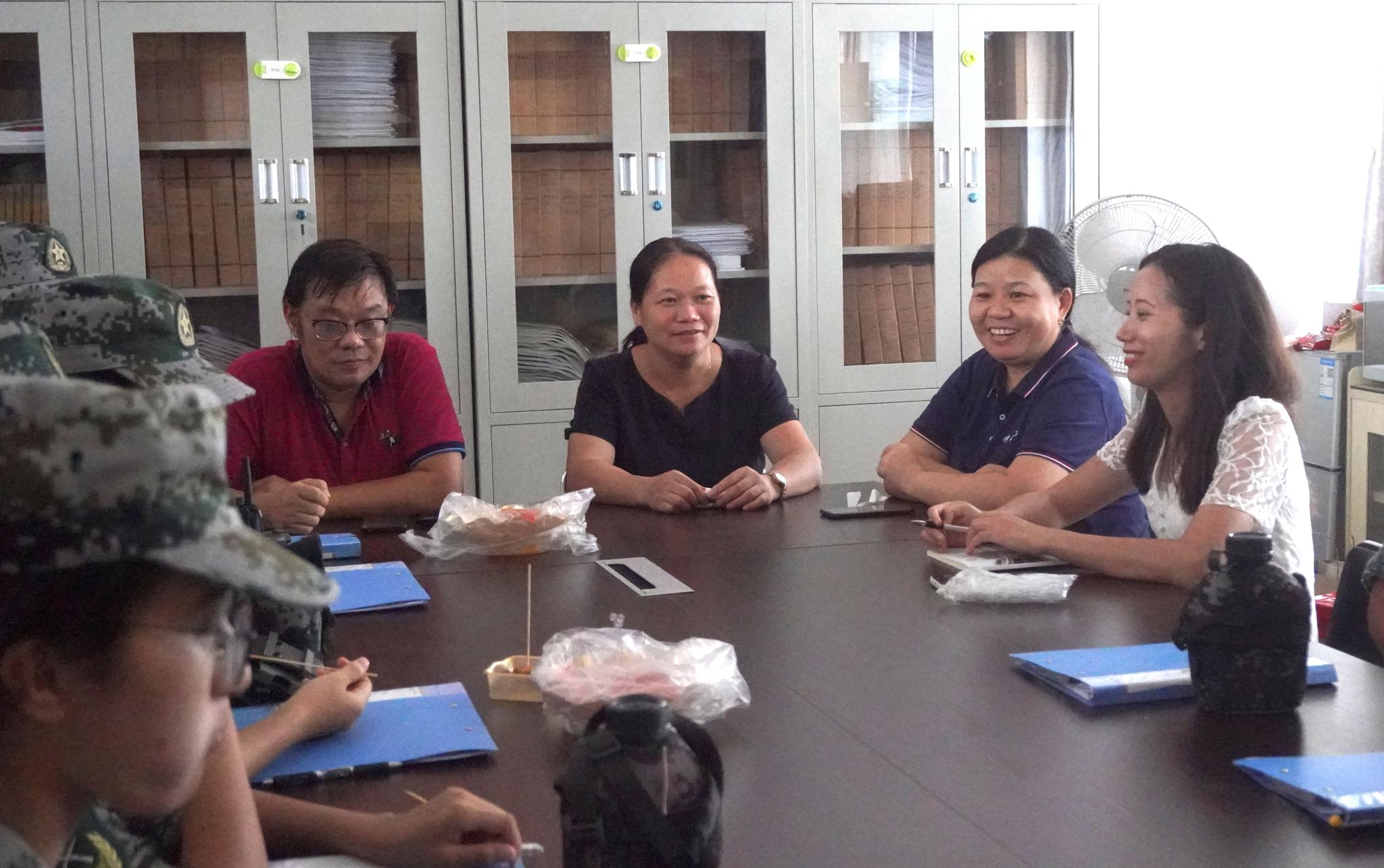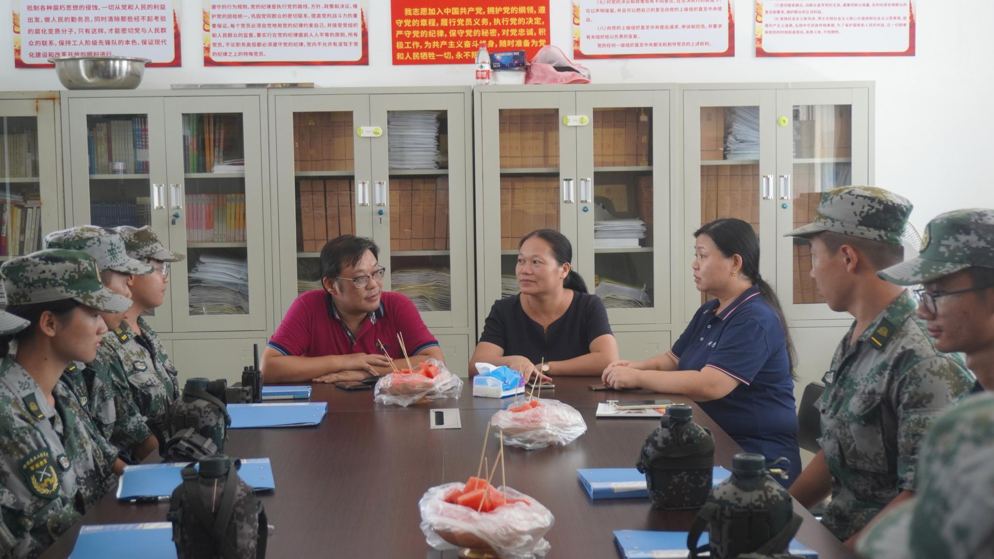 为深入了解2021级新生军训情况,鼓励军训教官不负使命、圆满完成军训任务,9月21日中午,外国语学院在白云校区刘503召开军训教官慰问座谈会。外国语学院党委书记吴小玲、外国语学院院长李磊、党委副书记柴明勤、辅导员陈韵及二团九营全体教官参加座谈会。