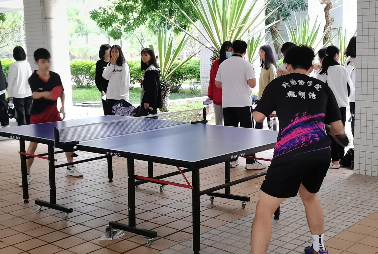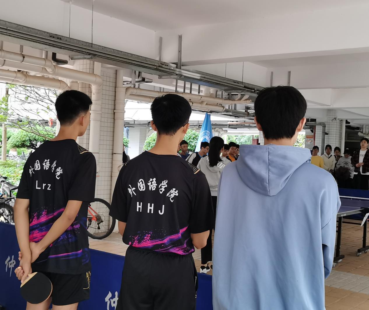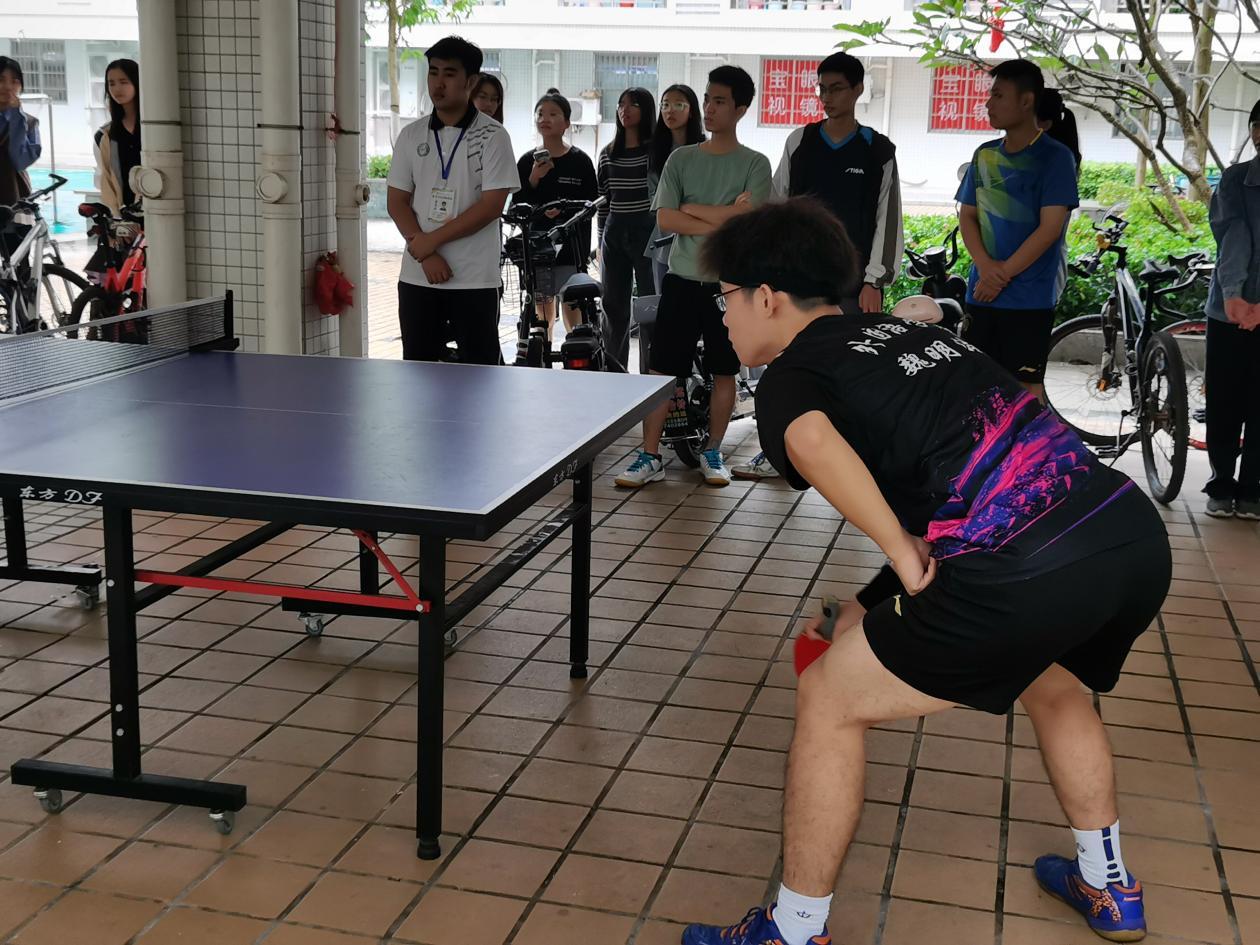 为丰富同学们的课余生活,营造热爱体育锻炼的校园氛围,10月30日上午,第五届“仲恺杯”乒乓球比赛在学生宿舍二栋楼下如期举行。外国语学院学生魏明浩、何嘉杰、刘楚勇、刘智睿、钟丽婷、陈筱慧、陈润珊、黄舒盈代表院乒乓球队参加比赛。本次比赛项目设有“男单、女单、男双、女双、混双”共五个项目。