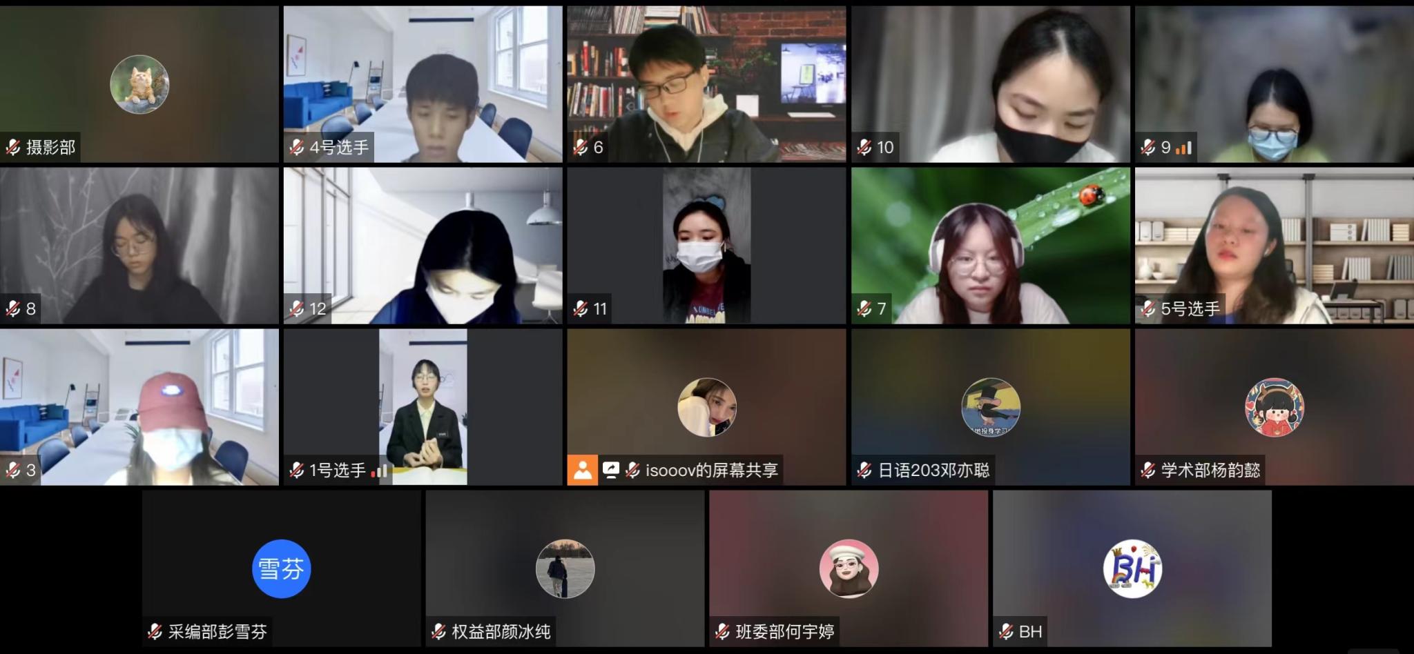 为营造浓厚的英语学习氛围、增强学生英语自主学习及口语表达能力、促进学风建设,4月17日下午,外国语学院学生会学术部于腾讯会议平台举办第十八届仲园英语演讲大赛初赛。参加本场比赛的学生评委有朱映彤、冯榕超、伍茗婕、伍敏琪、农莉莉、刘付逸。本次比赛共有74名同学参加。