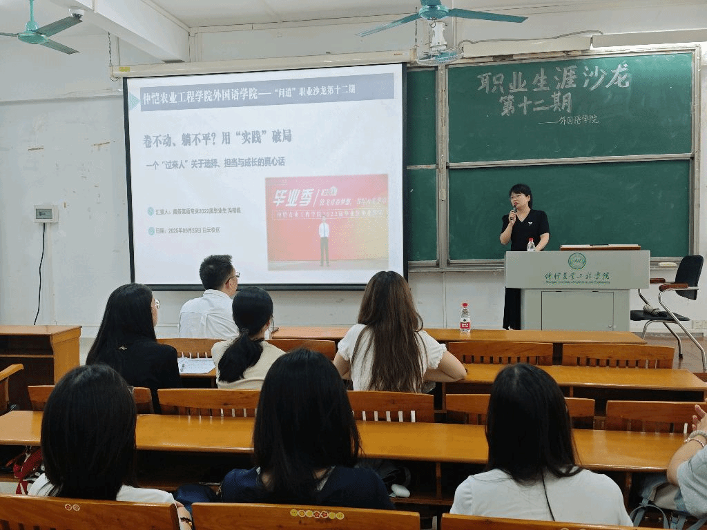 为提升外国语学院学生职业规划能力与综合素质,9月25日,外国语学院于杨楼310成功举办第十二期“问道”职业生涯沙龙活动。本次活动邀请外国语学院优秀校友冯榕超担任主讲,学院党委副书记周静、辅导员刘阳及2025级学生共同参与。