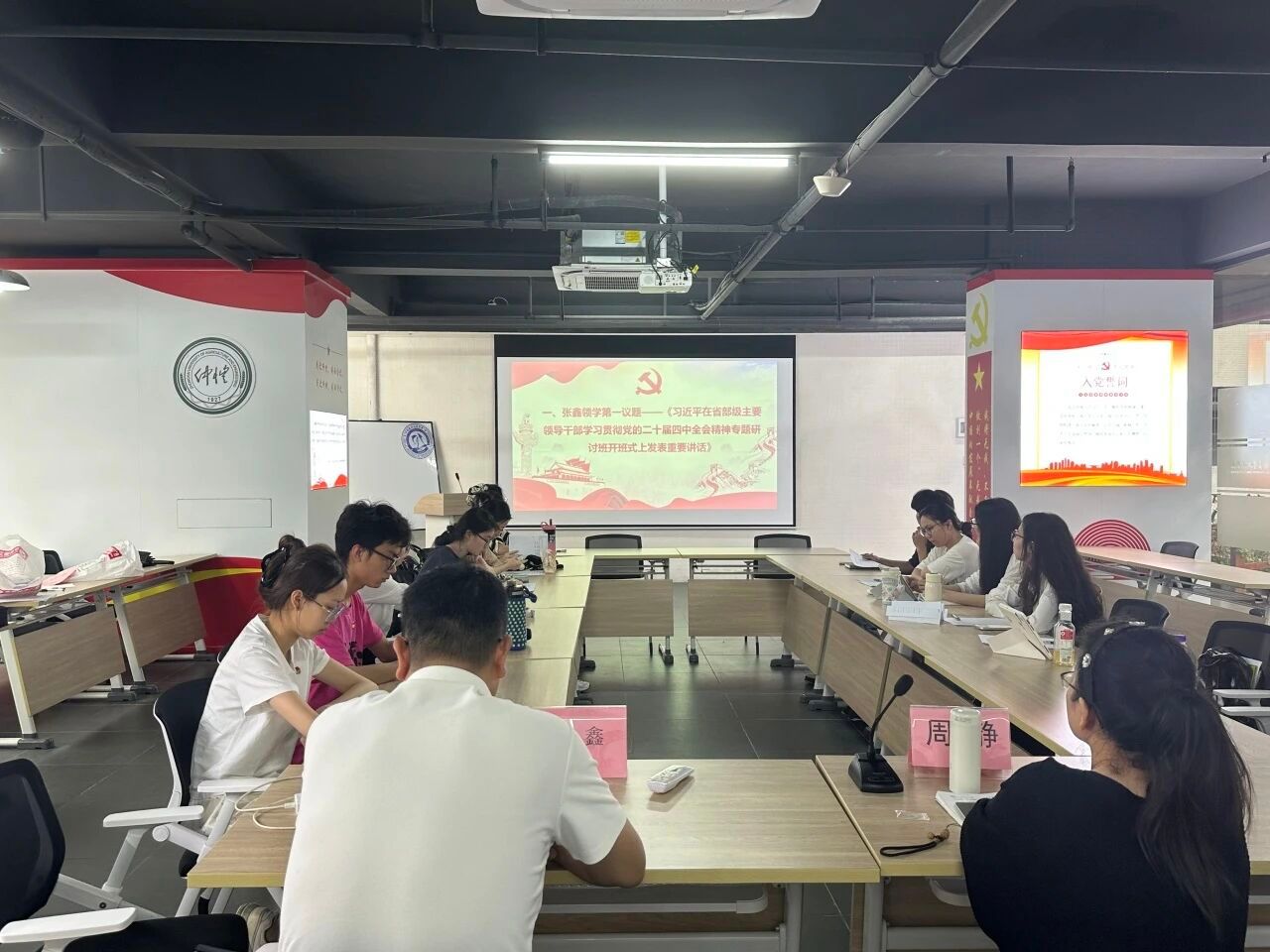会议伊始,支部书记张鑫同志带领大家学习第一议题——《习近平在省部级主要领导干部学习贯彻党的二十届四中全会精神专题研讨班开班式上发表重要讲话》。他结合青年党员成长实际解读讲话精神,引导大家把握核心要求、统一思想行动。随后,党员代表邱慧婷、叶佳淳结合自身外语专业特点,分享了将全会精神融入专业学习、志愿服务和学生工作的心得,表示将严格要求自己,坚定信念、勇担责任,在实践中提升党性、践行使命。