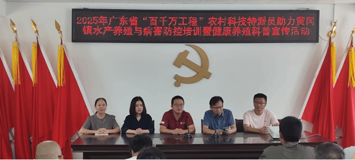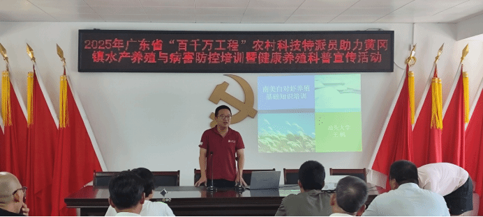 9月17日上午,2025年广东省“百千万工程”农村科技特派员在潮州市饶平县黄冈镇碧洲村举办水产养殖与病害防控培训暨健康养殖科普宣传活动,助力黄冈镇水产养殖发展。这场聚焦鱼虾养殖的实用科普培训,由仲恺农业工程学院、汕头大学、广东通威饲料有限公司及黄冈镇驻镇帮扶工作队联合主办,为当地养殖户送上“科技及时雨”。